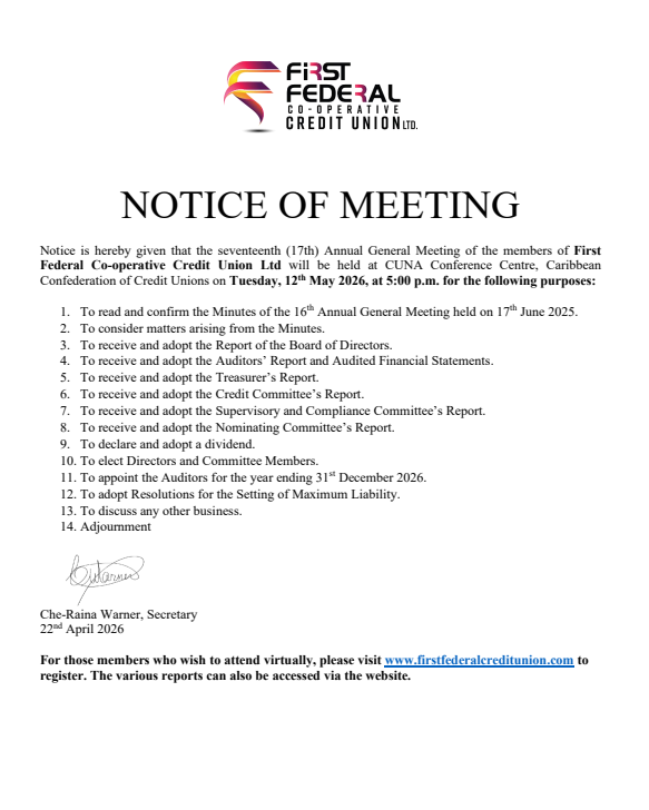 Are you passionate about helping people achieve their financial goals? Do you thrive in a dynamic, member-focused environment? If so, First Federal Co-operative Credit Union Limited is looking for you! As a fast-growing financial institution with three full-service branches across St. Kitts and Nevis, we pride ourselves on delivering exceptional service and innovative financial solutions to our